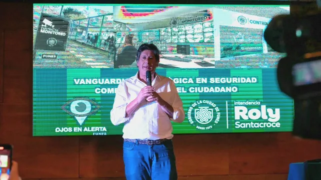 El intendente de la localidad de Funes, Roly Santacroce, presentó el programa de seguridad ciudadana Ojos en Alerta. El mismo está destinado a la seguridad de la localidad con un sistema de monitoreo con cámaras de videovigilancia. Asimismo, los vecinos tendrán una cuenta de WhatsApp habilitada las 24 horas.