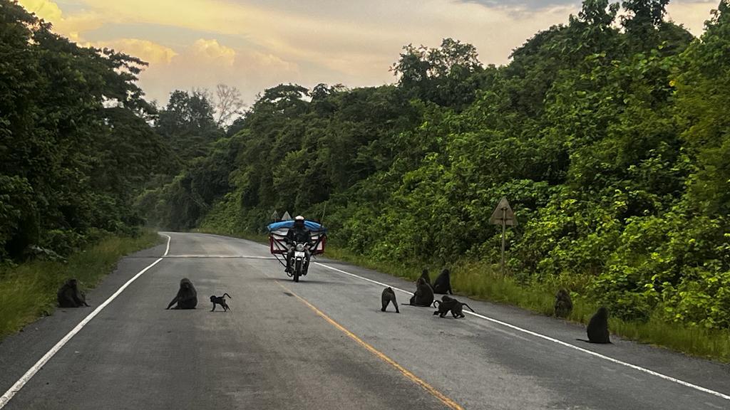 En la jornada de hoy, el periodista visitó otro parque nacional con la particular característica de ser un extenso bosque donde habitan más de 10 especies de monos pero los chimpancés son los que más destacan por ser muy simpáticos. “Impacta la manera de moverse, verlos de cerca, como te miran”, expresó al aire de Radio Boing.