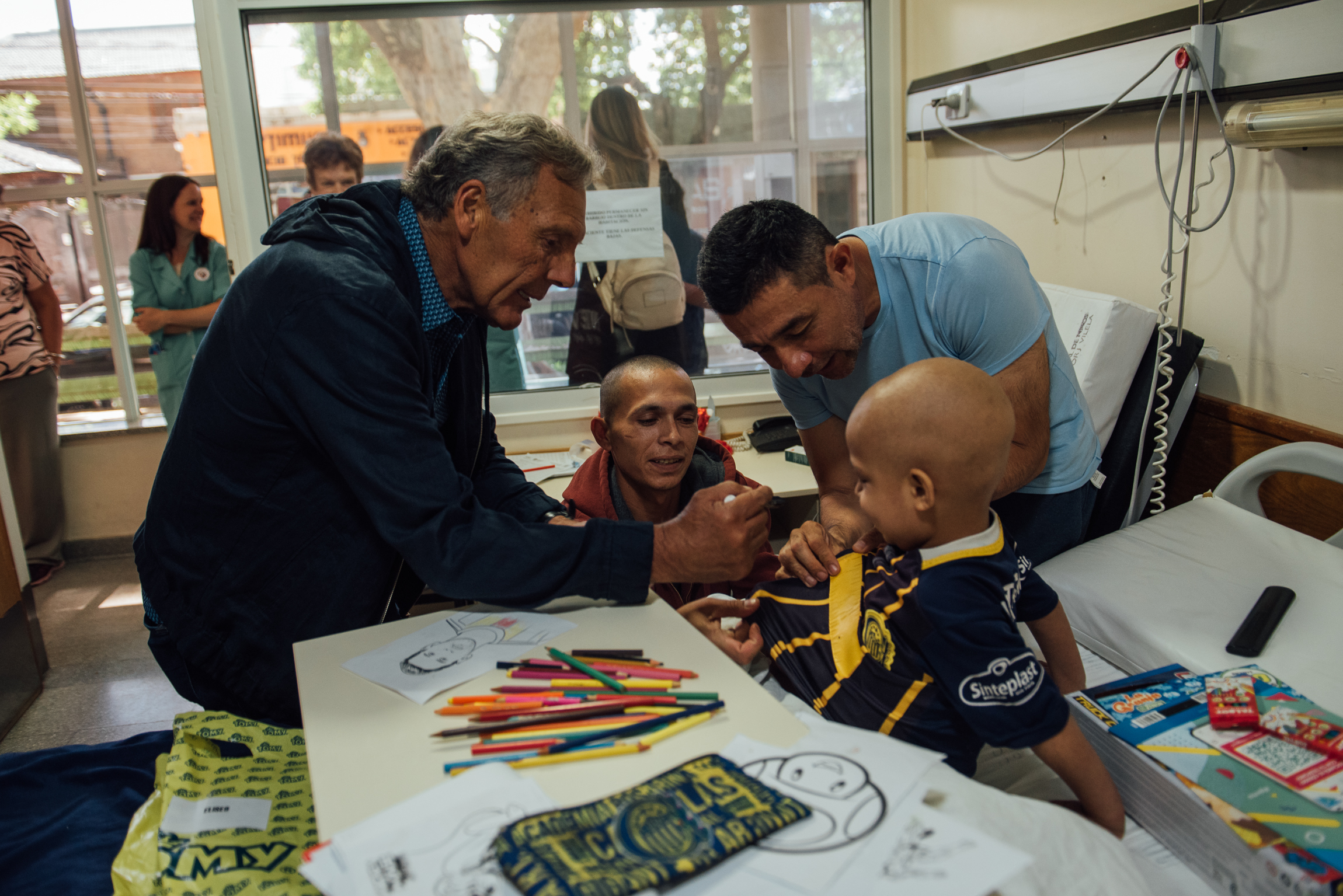 El entrenador canalla, que vivió en carne propia lo que significa luchar por la vida, estuvo en el área de oncología del Hospital de Niños Víctor J. Vilela y le entregó juguetes a chicos que lo recibieron con una sonrisa y la mirada más tierna, como si se tratara de un Papá Noel que los sorprendió en su rutina de tratamiento médico diario.