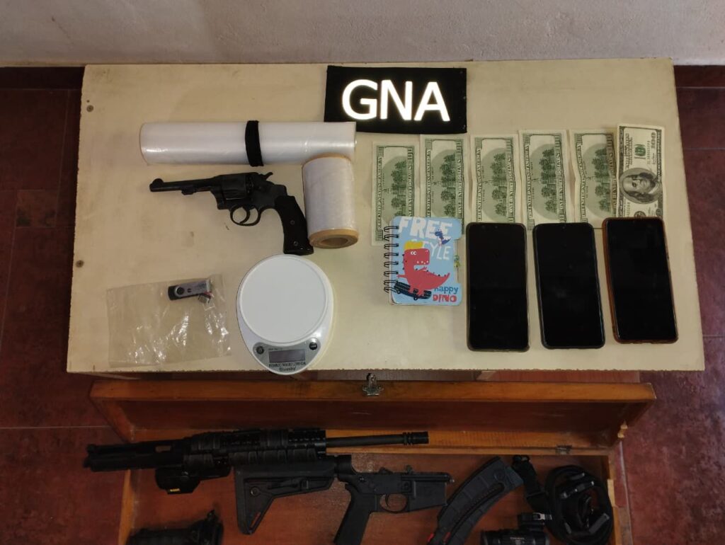 Durante los procedimientos, los gendarmes incautaron: Cocaína y marihuana, balanzas de precisión y elementos de fraccionamiento, armas de fuego y 94 municiones, dinero en efectivo en pesos y dólares y 32 teléfonos celulares, dos motocicletas y dispositivos de almacenamiento. Las cinco personas detenidas, todas mayores de edad, quedaron a disposición del juzgado interviniente.
