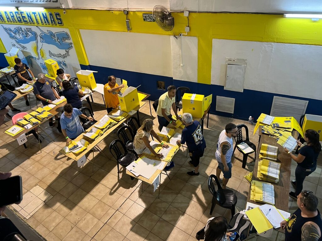 Más de media hora después del inicio de los comicios, la fila de socios daba la vuelta al Gigante de Arroyito y se calculaban alrededor de 1000 personas esperando. Con el correr de las horas, y el partido de la Argentina en marcha, la presencia fue bajando aunque se estima que hay récord de socios en la votación.