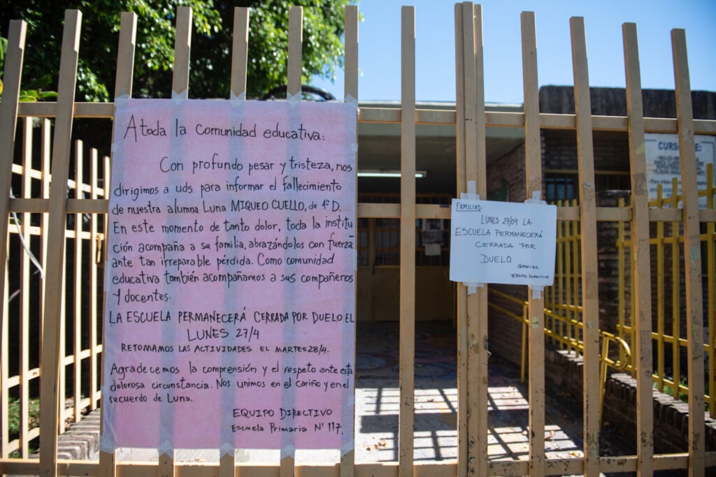 La información causó un fuerte dolor en la comunidad educativa y la escuela permanece cerrada por duelo este lunes. De acuerdo al primer parte policial, Luna se habría pisado los cordones cuando corría y su cabeza habría dado contra un banco de cemento, lo que le produjo severas lesiones.