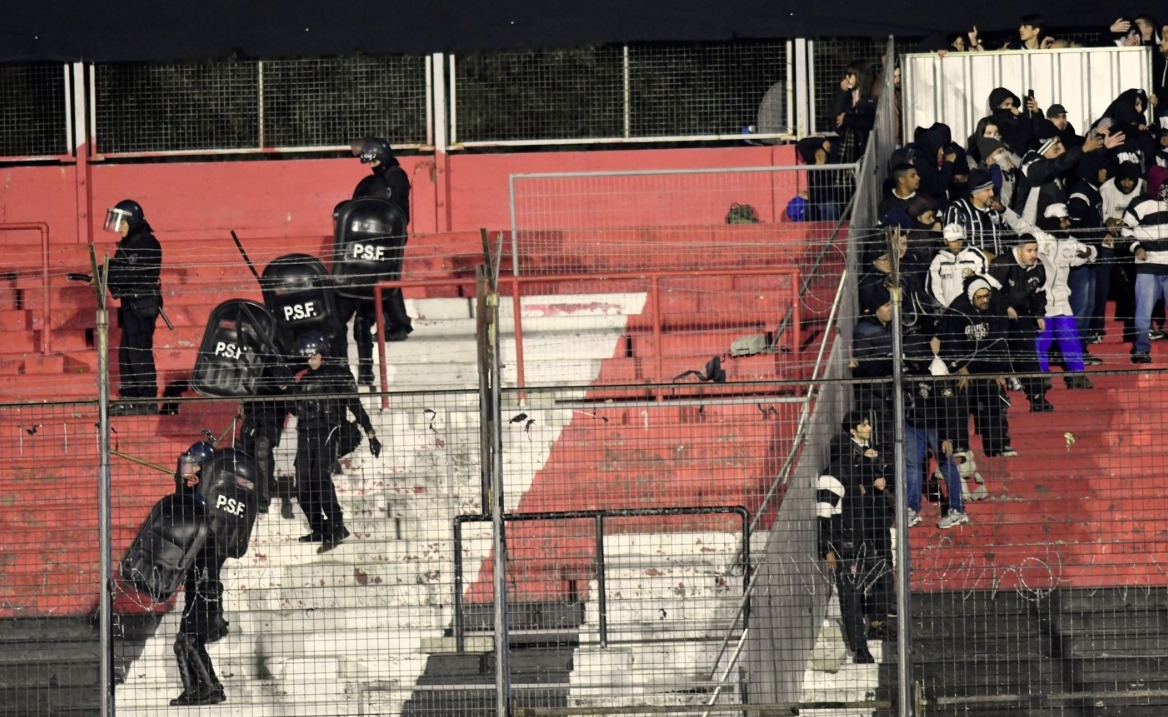 Una vez finalizado el duelo, efectivos policiales realizaron un cordón de seguridad para que los fanáticos de Corinthians puedan retirarse del Coloso, y alejaron a los hinchas rojinegros disparando balas de gomas a mansalva.