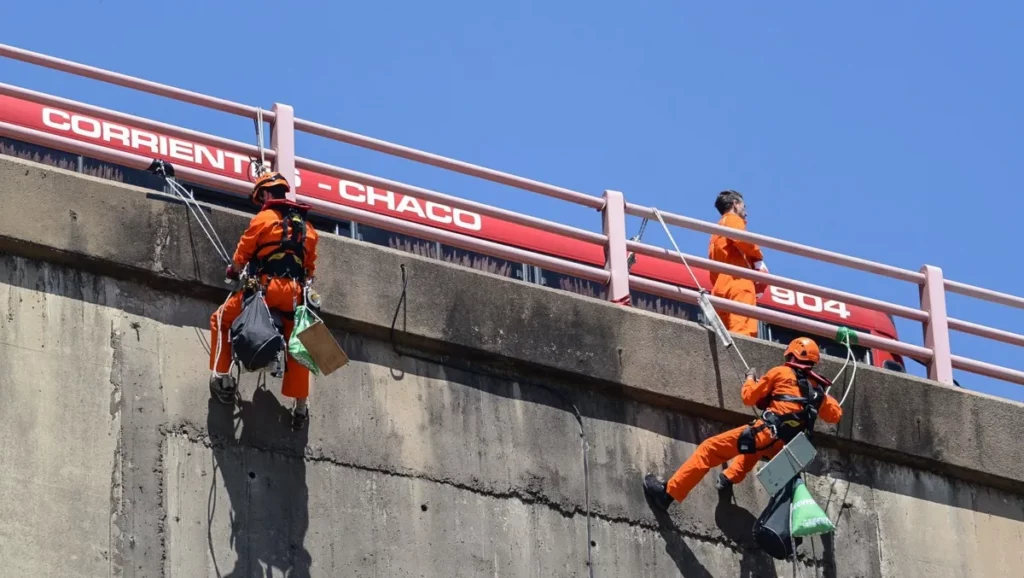 En el Día Internacional contra el Cambio Climático, activistas de Greenpeace decidieron encontrarse en el Puente General Belgrano demostrando su disconformidad con la deforestación en Chaco. Los mismos se colgaron a 35 metros de altura a modo de protesta contra los desmontes en la provincia.