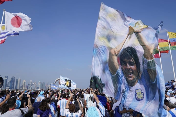 Con banderas y camisetas, los fanáticos hicieron saber su pertenencia a Salta, Tucumán, Córdoba, San Juan, Mendoza, Rosario, Santa Fe, Rafaela, Bahía Blanca, Neuquén, Comodoro Rivadavia, Trelew y Río Negro, entre otros puntos. Se trató simplemente de un adelanto de lo que se verá este martes por la mañana en las tribunas del estadio Lusail, donde Argentina debutará ante Arabia Saudita.