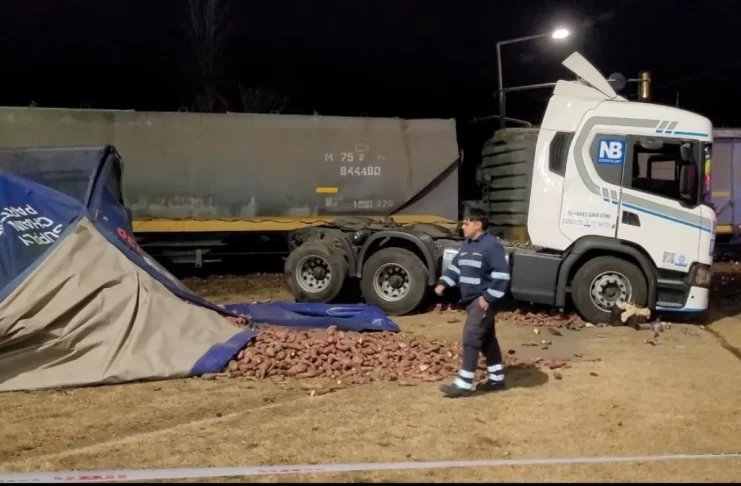 En el día de ayer, un impresionante accidente se registró en el cruce ferroviario ubicado en la Ruta Nacional 8 a la altura de Venado Tuerto. Un camión fue embestido por un tren cuando cruzaba las vías que cortan la ruta.