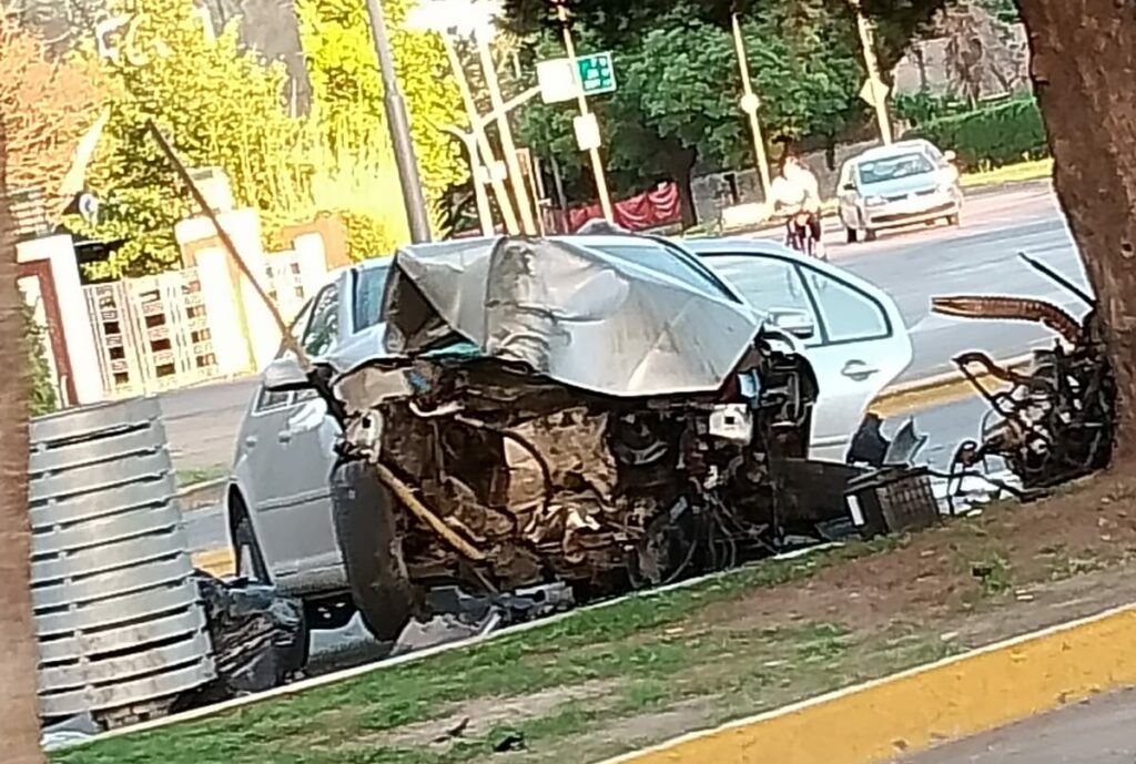 En las primeras horas de la mañana, un Volkswagen Bora perdió el control y se estrelló contra la rotonda de Wilde y Eva Perón, barrio Fisherton, quedando sobre la parada de colectivos.