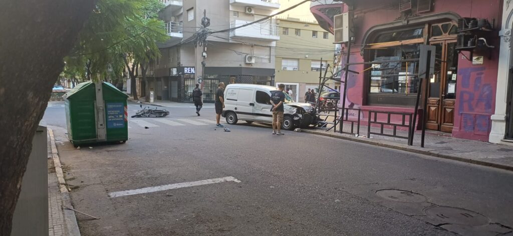 Un fuerte accidente de tránsito sacudió la mañana de este domingo en la esquina de Italia y Montevideo, en pleno centro de la ciudad. Por causas que aún se investigan, una camioneta utilitaria Peugeot Partner blanca colisionó con una motocicleta y terminó su recorrido incrustada contra la estructura exterior de un bar ubicado en la ochava. El impacto dejó importantes daños materiales y generó un amplio despliegue en la zona.