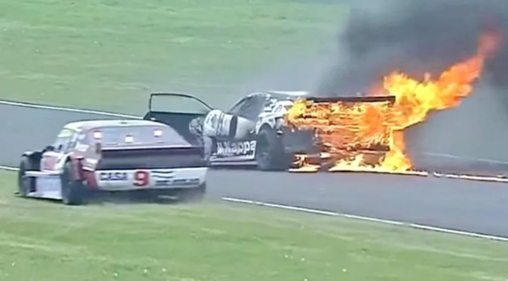 El piloto Gastón Mazzacane protagonizó el momento más dramático de la décima fecha del campeonato de Turismo Carretera, cuando su auto se incendió durante la primera vuelta.