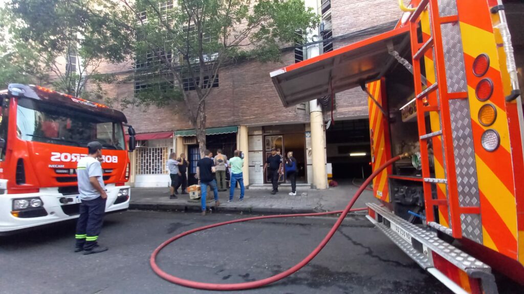 En la zona de Paraguay entre Tucumán y Urquiza, fuertes columnas de humo negro salían de una cochera mientras las autoridades procedían al corte del paso vehicular y el control del foco.