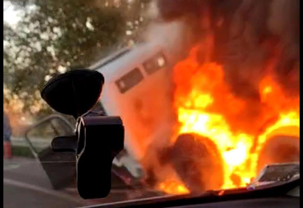 En las imágenes se puede ver cómo el fuego se propagó por la cabina, mientras personal de tránsito reducía el paso.