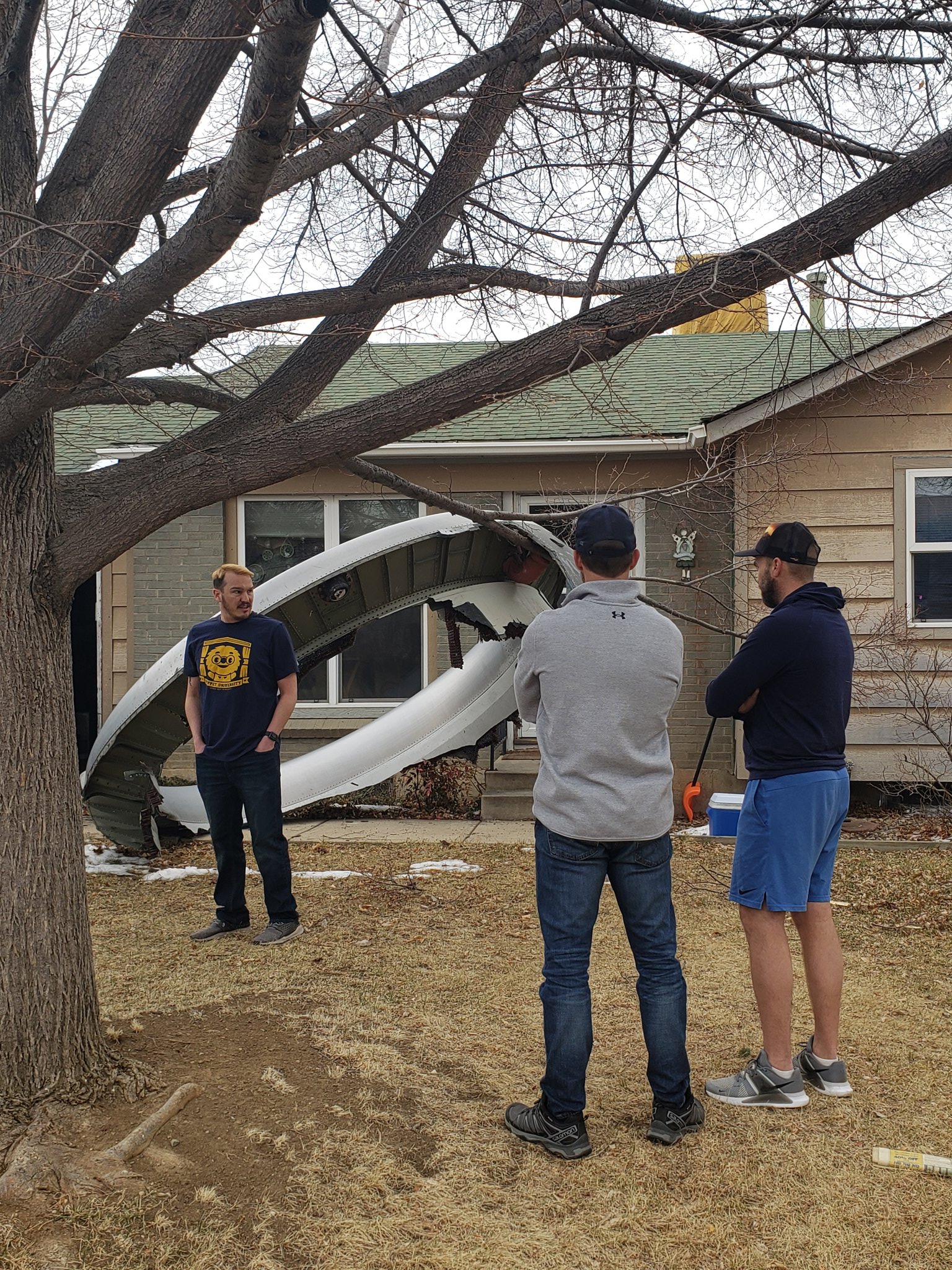 La policía de Colorado publicó fotos de piezas del fuselaje del avión Boeing 777-200, que cayeron a tierra. Por el momento no hay informes de heridos por la chatarra caída.