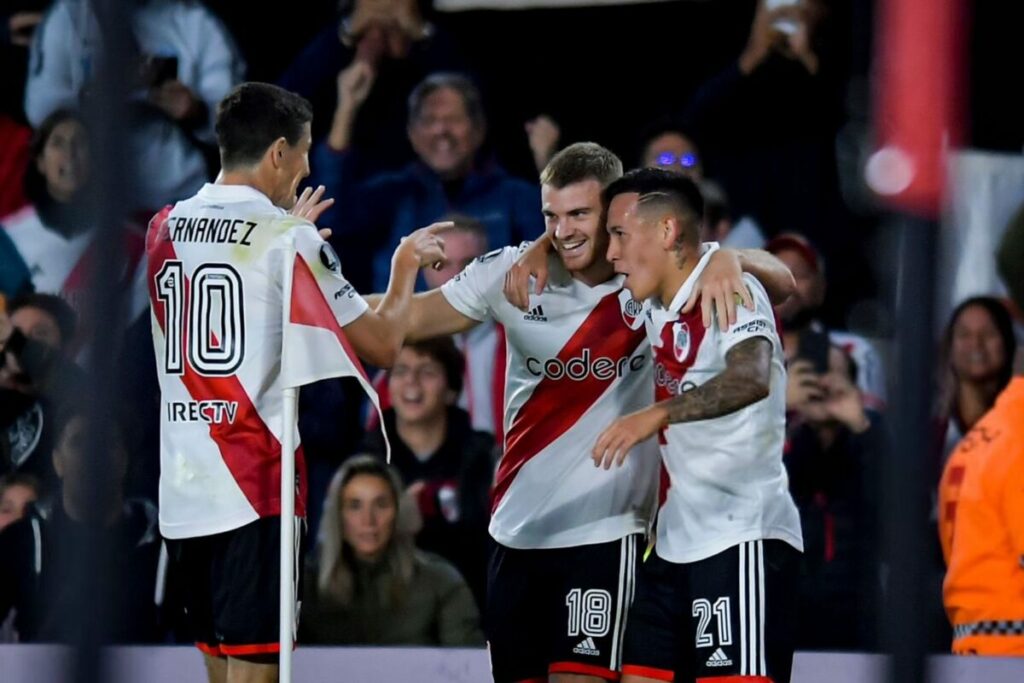 Pero el destino le tendría preparado un par de escollos más al anfitrión. A los 38 y en una contra, Washington Corozo quedó corriendo solo rumbo a Franco Armani, se le cruzó Enzo Díaz en la medialuna y se ganó la tarjeta roja por último recurso. Para más dificultad, Corozo ejecutó magistralmente ese mismo tiro libre y lo colocó a la izquierda del arquero a los 40. Dos a dos y a empezar de nuevo.