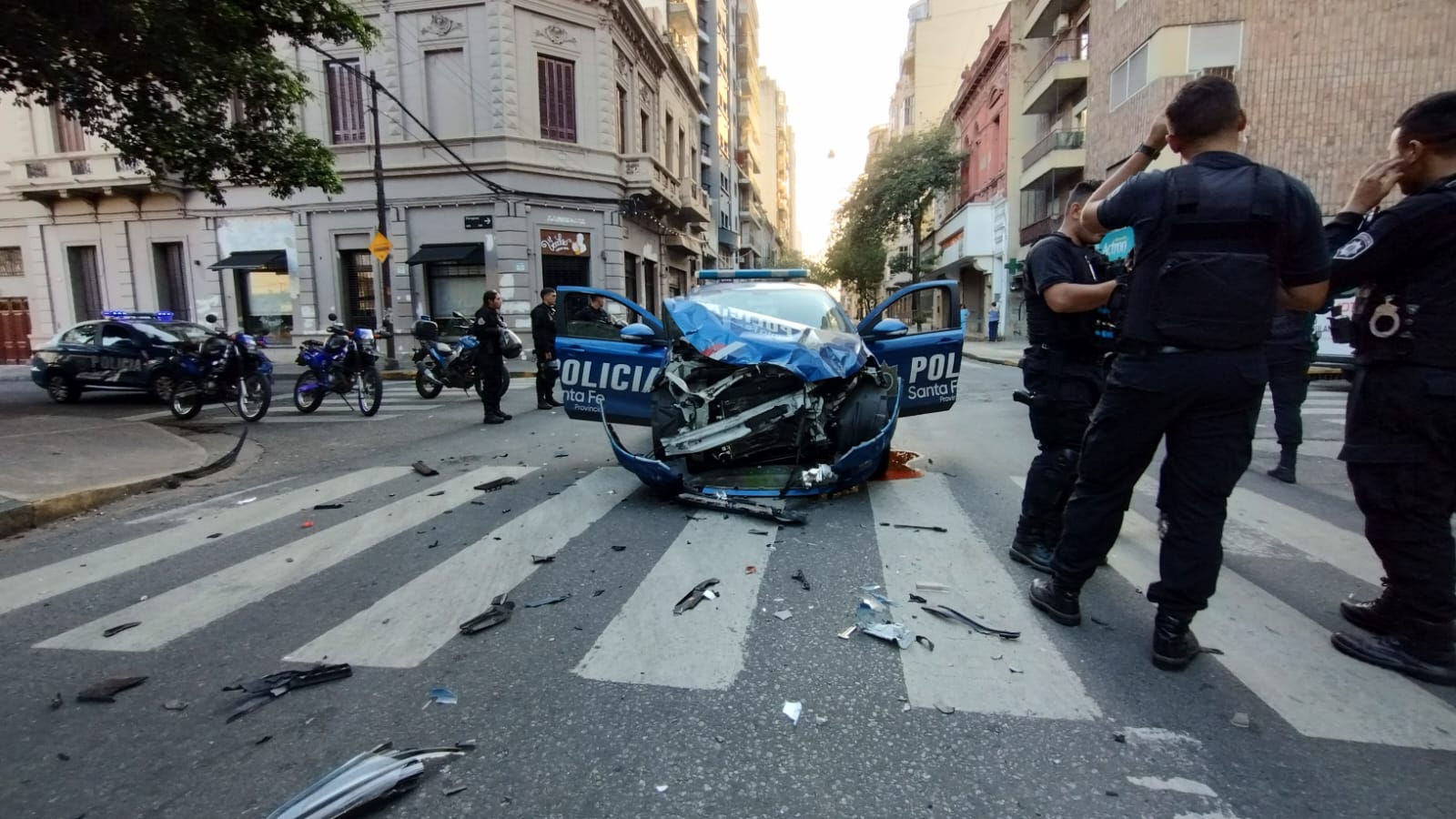 Un impactante siniestro vial tuvo lugar en las primeras horas de este jueves en pleno centro rosarino. Es que un patrullero policial y un colectivo urbano protagonizaron un violento choque en la esquina de Paraguay y Santa Fe.