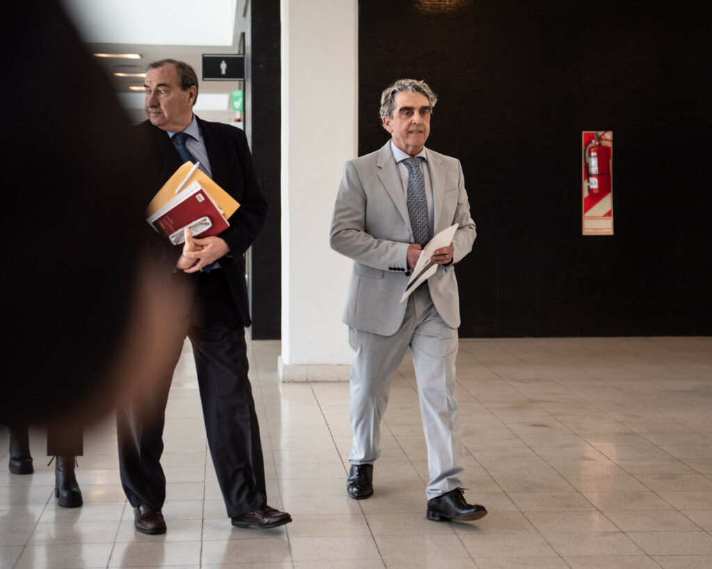 El momento en que el senador Traferri ingresaba a la audiencia