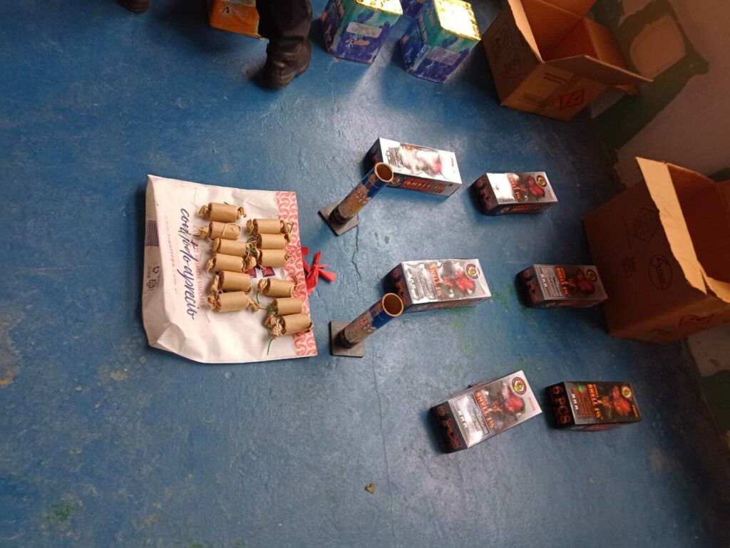 En total se secuestró: 40 tortas de humo de 25 tiros 1, 2″ marca punta austral, 4 tortas pirotécnicas marca punta austral modelo thunder de 16 tiros de 0.8, 35 potes de humo, 36 de bombas de estruendo y 6 morteros, 12 unidades de bombas de estruendo más 2 morteros y 6 bengalas de mano iluminante color amarillo