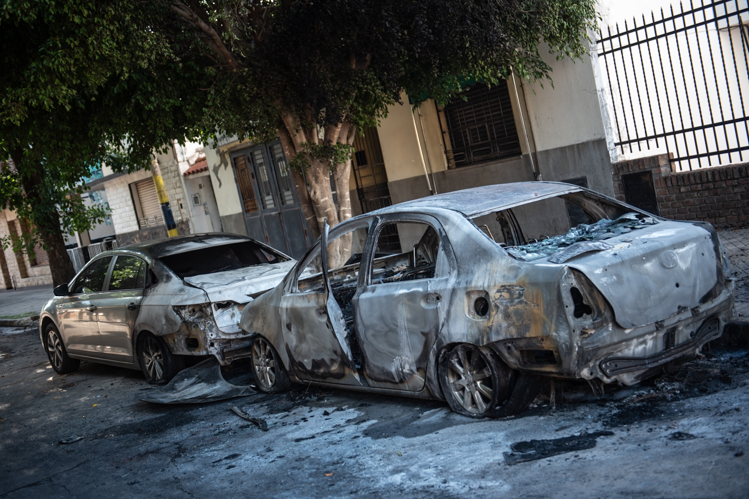 Durante la madrugada del miércoles, incendiaron dos automóviles que se encontraban estacionados en Juan B. Justo y Drago, a pocos metros del estadio Gigante de Arroyito. En el lugar, además, la Policía detectó un grafiti realizado con pintura negra sobre la calzada, donde se leía: “Te cabió como en la sede, mangas de traidores”.