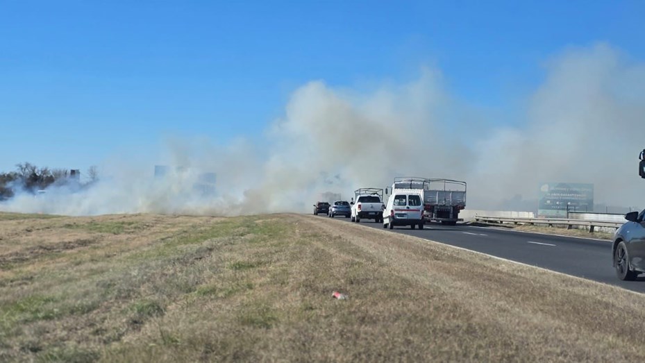 Las llamas, visibles desde la calzada, afectaron una extensa franja de pasto seco y provocaron una densa humareda que redujo considerablemente la visibilidad en la zona.