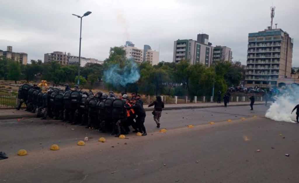 Mientras se busca saber donde está Morales tras la aprobación, continúan los incidentes en la zona aledaña al parlamento ubicada en la calle Independencia y Gorriti.