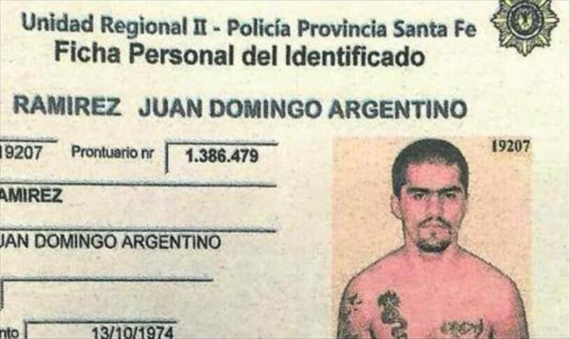 La foto que abre esta nota es de 2019 y lo muestra a Ramírez entre los hinchas de Central, en cuero y con sus tatuajes visibles. Los mismos que se pueden ver en la credencial suya como presidiario, que figura aquí abajo: