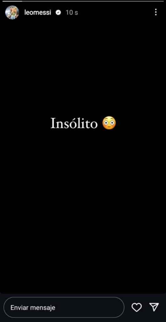 Minutos después de lo sucedido en Francia, Lionel Messi publicó un mensaje en sus redes sociales. El número 10 redactó: “Insólito“, en una pantalla negra de fondo con letras blancas.