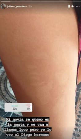 “Mi novia se quemó en la costa y me van a llamar loco pero yo veo al Diego hermano”, expresó el joven en una historia de la red social Instagram. Rápidamente la foto fue replicada y viralizada.