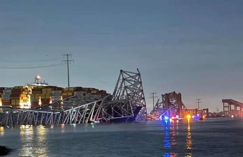 Las primeras informaciones señalan que el buque de carga proveniente de Singapur, impactó esta madrugada contra uno de los pilares que sostenía el puente, provocando que se derrumbara en cuestión de segundos mientras circulaban sobre él decenas de coches.