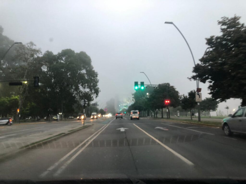 La presencia de la niebla también se hizo sentir en los ingresos a la ciudad. En las inmediaciones del puerto, sobre avenida Belgrano, la visibilidad se encontraba seriamente afectada, una situación que también se replicó en la zona de Puerto Norte.