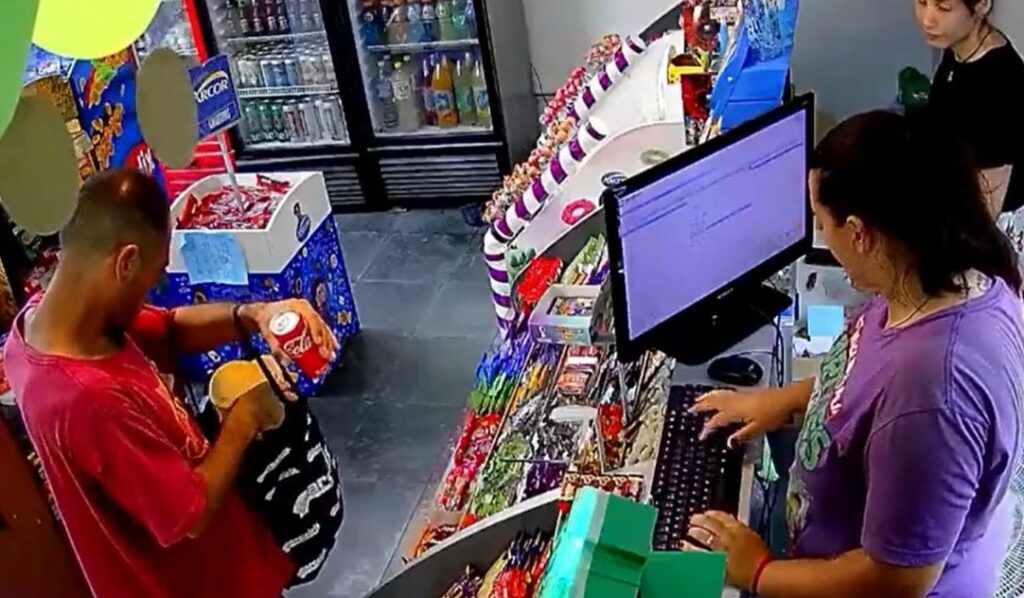 Un insólito hecho tuvo lugar en un kiosko del centro de Rosario, cuando un hombre quiso llevarse una Coca Cola y un alfajor sin pagar. En las imágenes, viralizadas en redes sociales, se puede ver cómo le sale mal la jugada ya que la empleada lo terminó echando del comercio.
