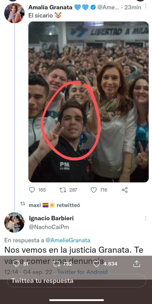 Tras el ataque fallido contra Cristina Fernández de Kirchner, diferentes sectores políticos de la oposición decidieron no creer lo que pasó en Recoleta e intentaron instalar que todo fue una puesta en escena. Amalia Granata fue una de esas personas que se manifestaron en contra. Durante estas fake news, se vio perjudicado Ignacio Barbieri, un joven de Lanús.
