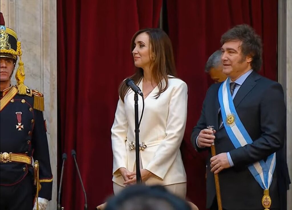 A partir de este momento, Villarruel le tomará juramento a Milei como nuevo Presidente y el Escribano Mayor de Gobierno leerá el acta correspondiente y de realizará el traspaso de insignias, en la que Alberto Fernández le entregó la banda y el bastón de mando al libertario.