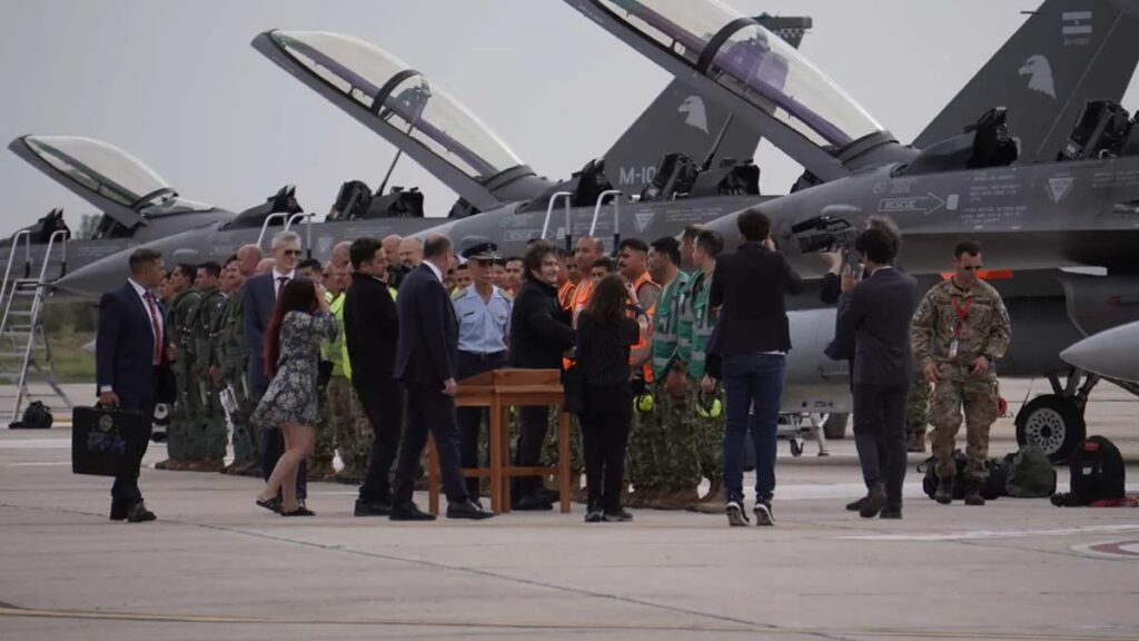 “Después de una ansiosa espera, tengo detrás mío los primeros aviones de combate F-16. Con esta importante inversión en armamento militar, vamos a robustecer nuestra Fuerza Aérea”, afirmó el presidente en el acto.