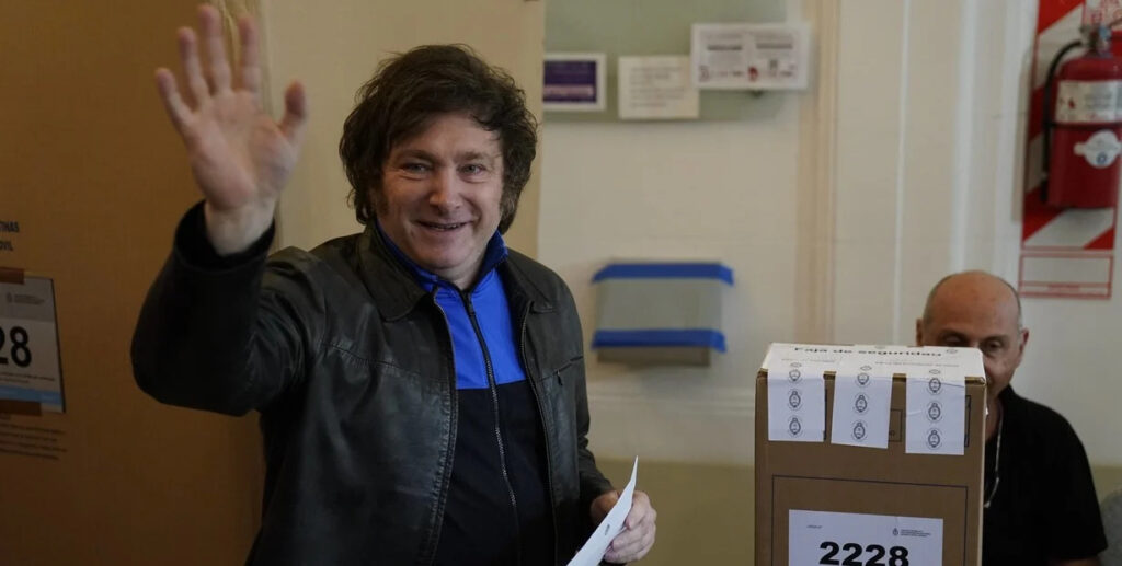 “Estamos en condiciones de hacer el mejor gobierno de la historia”, dijo Milei sobre su gobernabilidad. En medio de un caos de prensa, policía y seguidores que intentaban acceder entre forcejeos, el candidato de La Libertad Avanza, sólo pudo dedicar pocas palabras.