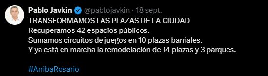 El posteo decía: “en cuatro años triplicamos la cantidad de cámaras para tener 1750 en toda la ciudad. Con el gobernador Máximo Pullaro vamos a llegar a las 5000, para que Rosario sea la ciudad más videovigilada de Argentina”.