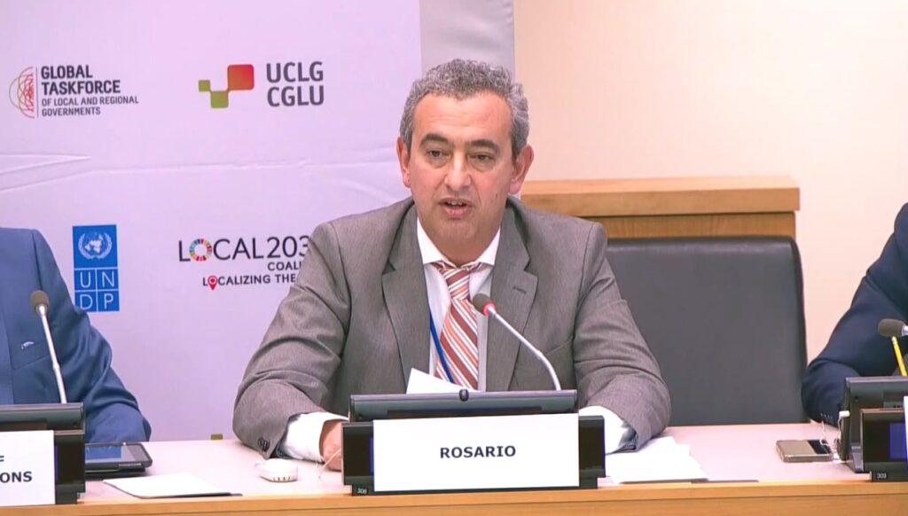 En el marco de la misión oficial que cumple en Estados Unidos, el intendente Pablo Javkin expuso este martes 12 de julio en el V Foro de Gobiernos Locales y Regionales sobre Agenda 2030, que se desarrolla en el marco del Foro Político de Alto Nivel de Naciones Unidas (HLPF). Durante su presentación en el prestigioso evento convocado por la ONU en Nueva York, resumió algunas de las políticas locales impulsadas desde su gestión en relación al cumplimiento de los Objetivos de Desarrollo Sostenible (ODS) y la Agenda 2030, y describió los desafíos que implica ello para los gobiernos locales, como también su rol protagónico frente a la problemática.