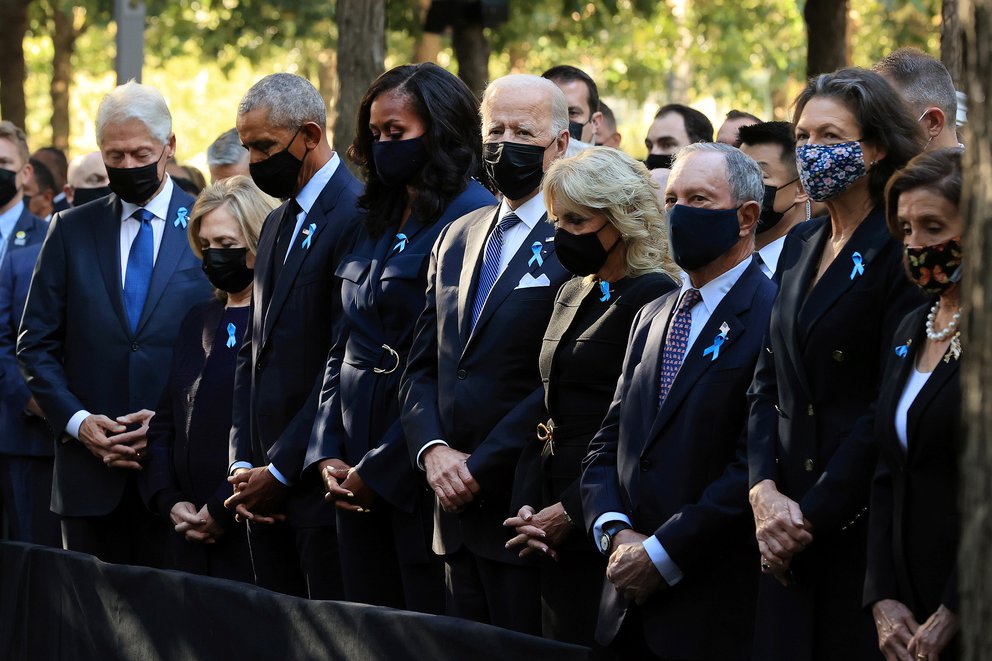 El jefe de Estado estuvo acompañado por Bill Clinton y Barack Obama, que llegaron con sus esposas Hillary y Michelle. George Bush, quien gobernó Norteamérica en el 2001, asistió a la ceremonia en Pennsylvania. Además de entonar la canción I’ll See You In My Dreams”, los asistentes realizaron cuatro minutos de silencio, en conmemoración de los impactos.