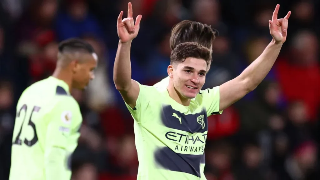 En el marco de la fecha 25 de la Premier League, Julián salió como titular junto a Erling Haaland para afrontar el duelo ante Bournemouth. Y el primer gol del partido llegó rápido, a los 14 minutos del primer tiempo. El argentino fue el encargado de capturar un rebote dentro del área chica y convertir el 1 a 0.