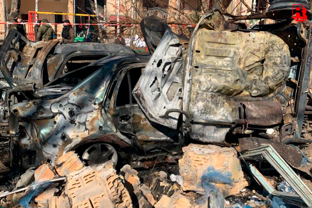 Sábado 23.20 una bomba cae en la periferia de Kiev, el fuego con formato de fogonazos invade una noche sin luna, destrucción, terror que se desparrama por una ciudad a oscuras, se recomienda no utilizar más de una luz por casa y tapar las ventanas con frazadas, el suministro no se corta, el miedo hace el resto. En la capital de Ucrania habitan 3,4 millones de personas, y quedan alrededor de 1,6, el resto ya decidió partir. Las bombas, los misiles, o lo que fuere, no caen dentro del mapa de la guerra. Era un barrio humilde de Kiev, casi en las afueras, quien sufrió las brutales consecuencias de una guerra, que como tal escapa a cualquier manto de piedad imaginable. Han muerto 5 personas, 2 más están graves y más de 45 presentan heridas múltiples. Un instante, un flash diabólico que destruye la calma de un pueblo inocente que nada entiende sobre lo que ocurre. “Putin no sos un rey, miserable”, grita una mujer envuelta en un llanto que no la deja terminar su alarido.