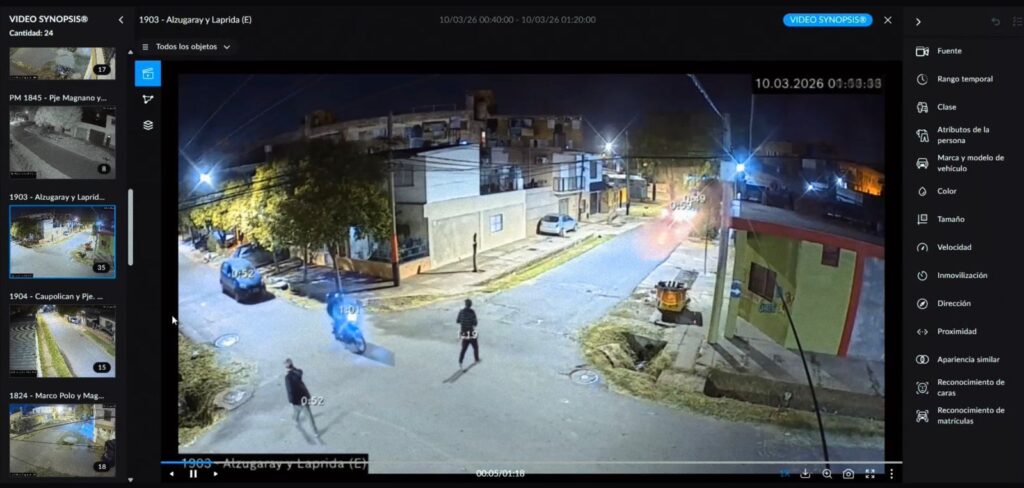 La clave de la pesquisa estuvo en detectar un patrón de desplazamiento. Los operadores del sistema comenzaron a revisar imágenes en las cámaras ubicadas en distintos cruces cercanos -Laprida y Patricios, Frías y Laprida, y Alzugaray y Laprida- mediante herramientas de búsqueda inteligente que permiten filtrar personas, vehículos o trayectorias en pocos minutos.