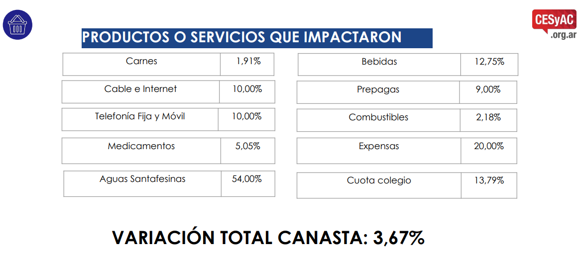 La canasta familiar en Rosario es de $1.099.822, el aumento fue de un 3,67 por ciento. Por su parte, la de jubilados, subió un 3,61 por ciento y tiene un costo total de $507.000, explicaron.