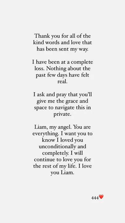 Asimismo, la joven se refirió a Payne y le habló directamente: “Te pido y rezo para que me des la gracia y el espacio para navegar esto en privado”.