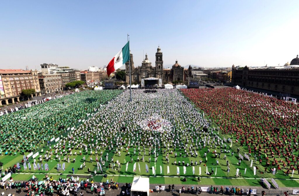 La Ciudad de México vivió una jornada histórica al conseguir el récord internacional por organizar la clase de fútbol más grande del mundo. Un total de 9.500 personas participaron este domingo de una multitudinaria lección de fútbol realizada en la emblemática plaza del Zócalo de Ciudad de México.