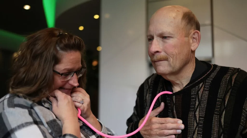 Un conmocionarte encuentro tuvo lugar en Chicago, Estados Unidos. La imagen muestra a Amber Morgan, una mujer de Indiana, que escucha el latido del corazón de su difunta hija en el pecho de Tom Johnson, de Illinois, que lo recibió gracias a un trasplante.