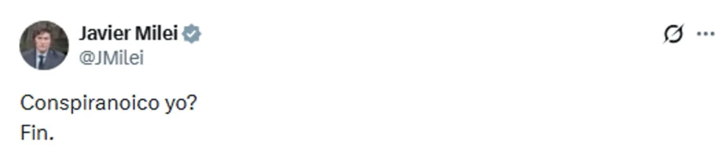 “¿Conspiranoico yo? Fin.”, escribió el mandatario en su cuenta de X, sin realizar menciones directas a la medida de fuerza ni a la dirigencia sindical.
