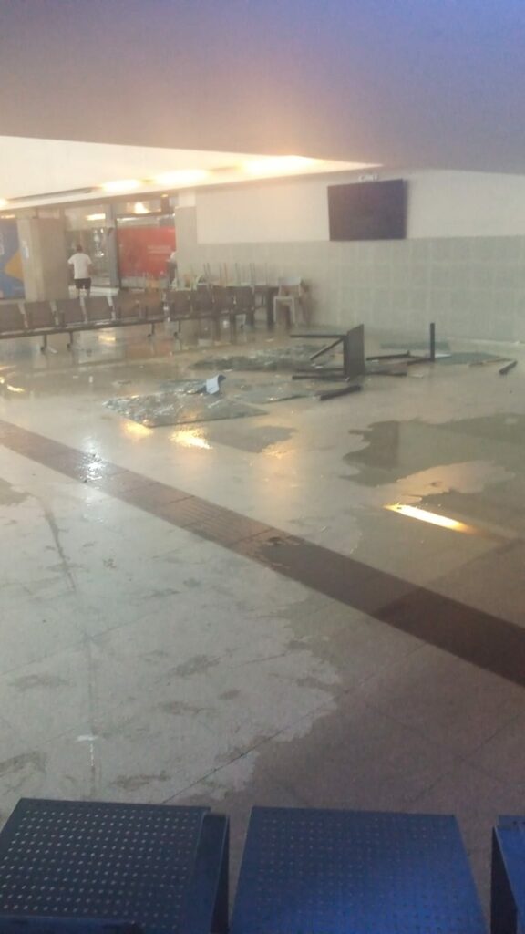 A pesar de que aún quedaron vidrios rajados y con riesgos de romperse, por el momento el sector no fue clausurado y son los trabajadores de la Terminal quienes avisan a los pasajeros de los riesgos de caminar por allí.