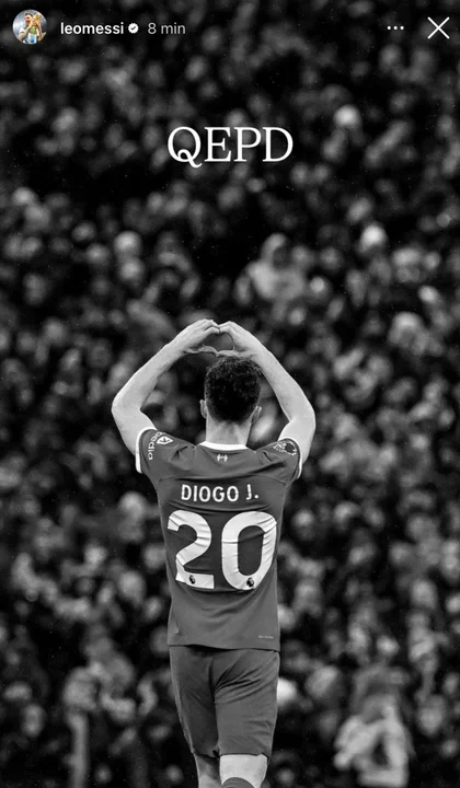 El futbolista argentino Lionel Messi compartió una historia en Instagram luego de que se conociera la noticia de la muerte del portugués Diogo Jota, quien se desempeñaba en el Liverpool de Inglaterra, en un accidente de tránsito.