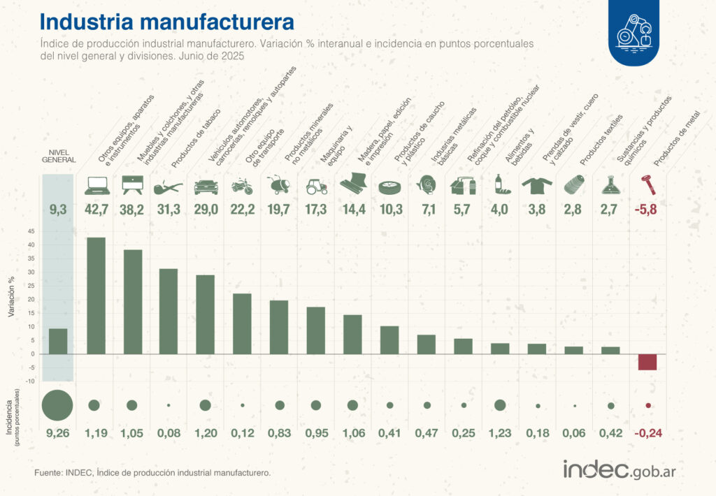 Frente al mismo mes de 2024, muestra un alza de 9,3%, ya que el umbral de la producción estaba muy bajo producto de la recesión. Tal es así que en el primer semestre acumula un incremento de 7,1% respecto al mismo período del año previo.