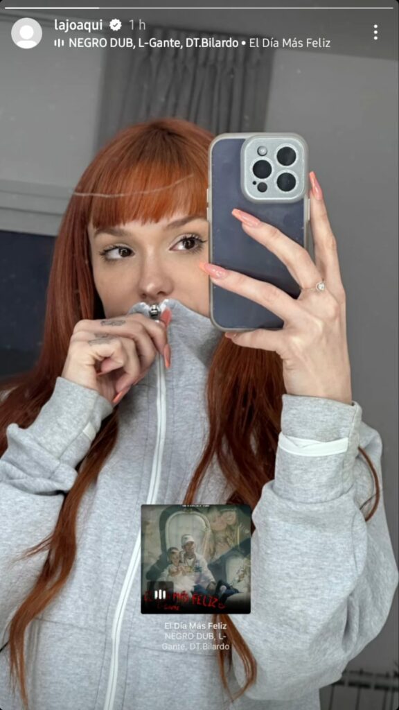 La Joaqui luego de haber anunciado su retiro de las plataformas por un tiempo, para cuidar su salud mental, reapareció en las redes sociales. La cantante compartió una selfi desde su casa y la acompaño con la canción “El día más feliz”, el tema reciente de L-Gante, y de esa manera dejó en claro el apoyo a su colega; quien se encuentra detenido acusado de amanezar con un arma y de privar de la libertad a un joven con la cual tenia una enemistad.