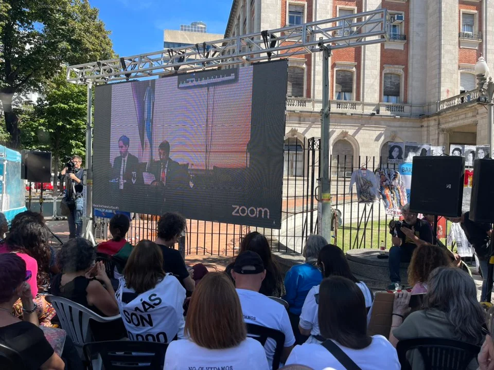 El fallo se proyectó a través de una pantalla en la puerta de los Tribunales, donde también se desarrolló el Juicio por Brigadas que operaron de manera clandestina durante la década del ’70 en Quilmes, Banfield y Lanús.
