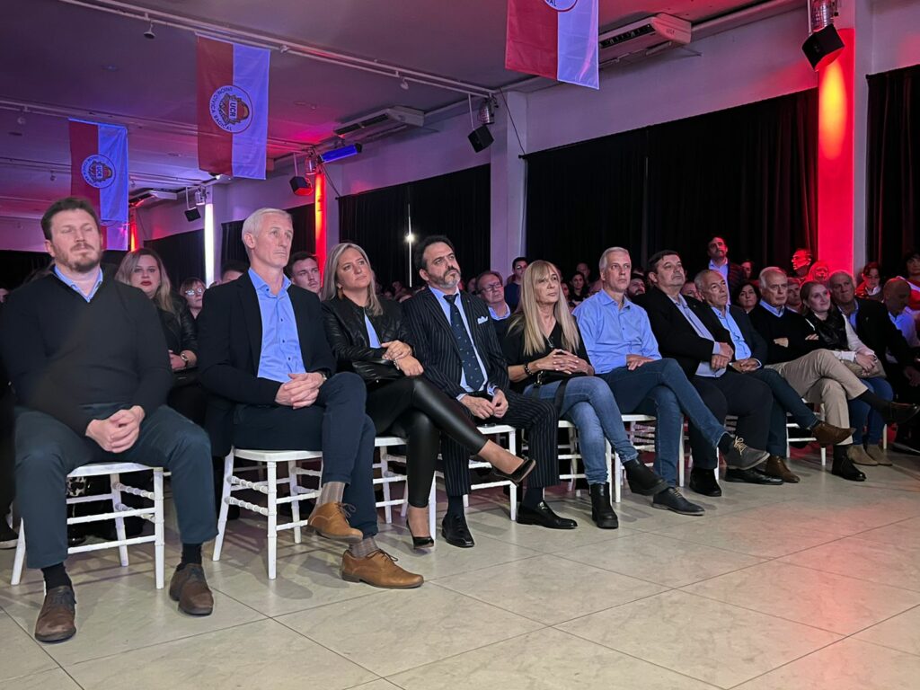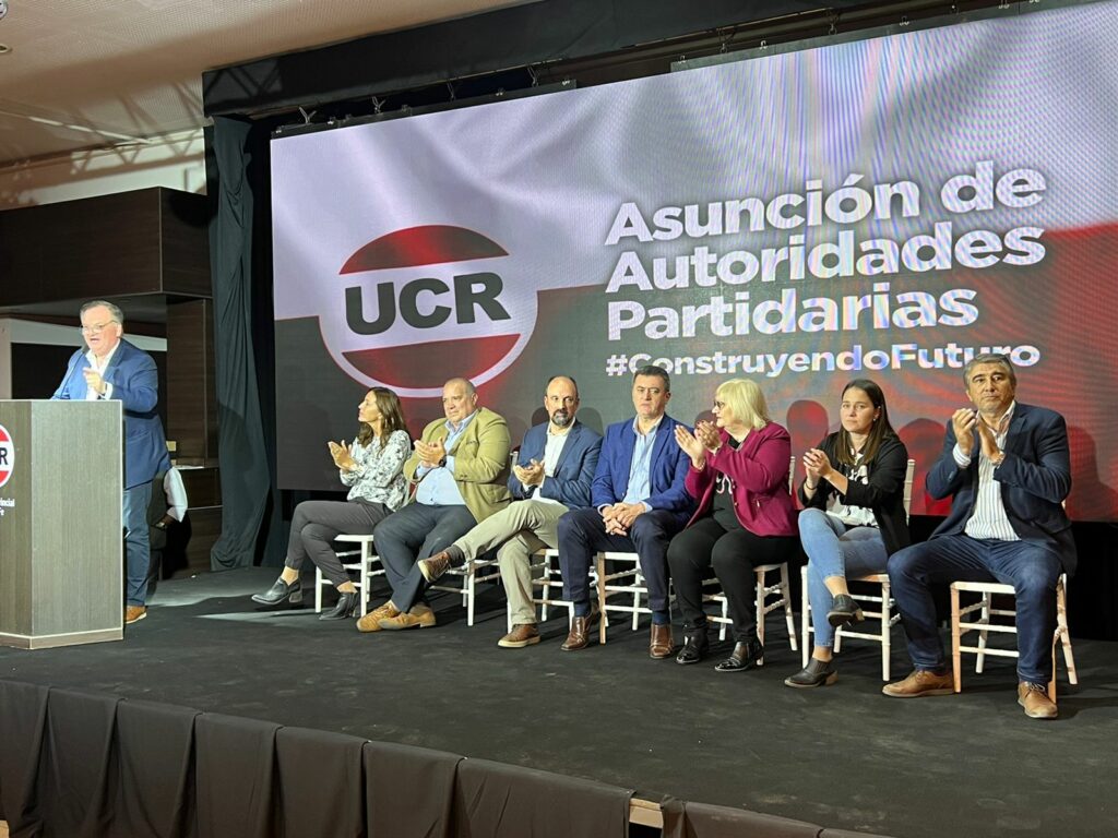 La mesa del Comité radical se presentó en el escenario. Michlig quedó acompañado de Griselda Caffaratti, Julián Galdeano, José Corral, Federico Pezz, Carolina Osuna, Maria del Carmen Amero de Brunazzo y Fabián Bastía.